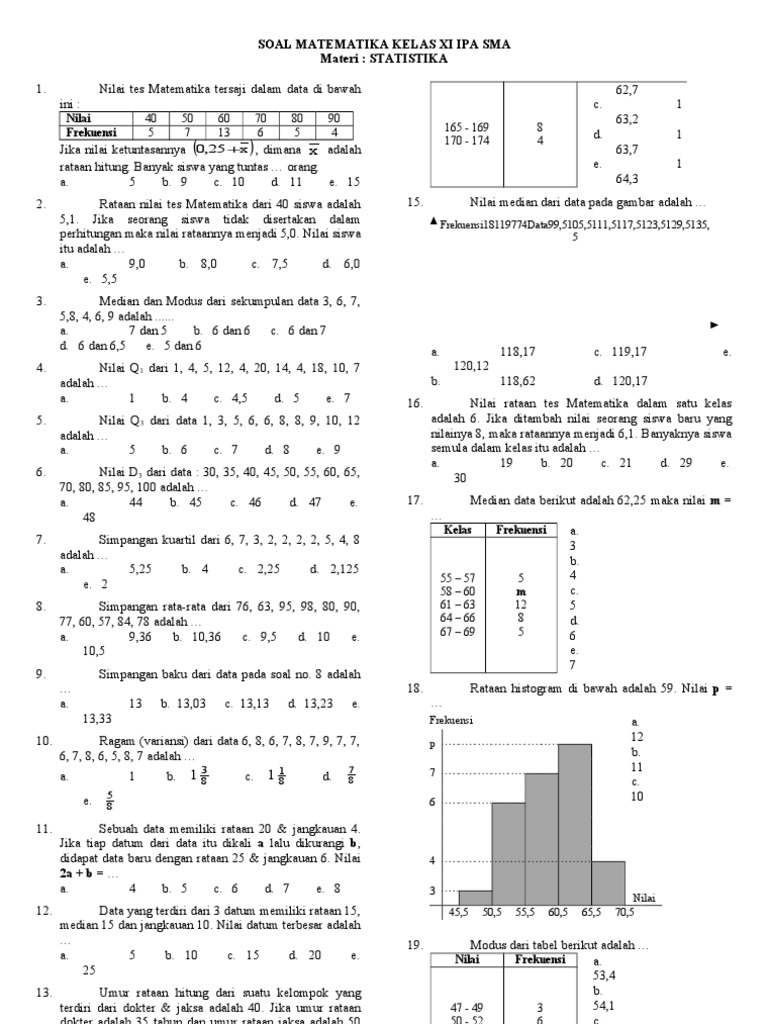 Soal Matematika Kelas 6 Materi Statistika - Soal Ulangan Harian Matematika Materi Statistika Kelas 6 ... / (28 x 35) + (28 x.